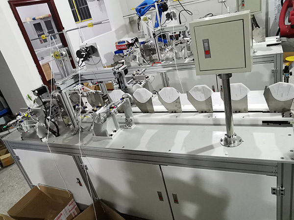 The KN95 ear strap wire machine is mainly composed of the welding station for the nose bridge wire and ear strap 1. Ear strap welding